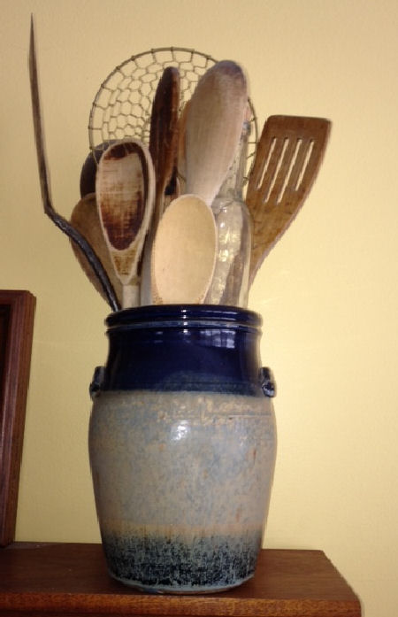 | I generally call these spurtle holders just for fun. A spurtle is a wooden stir stick - like a wooden spoon handle without the spoon part - used to stir porridge (oatmeal). Great word, don't you think? | ||